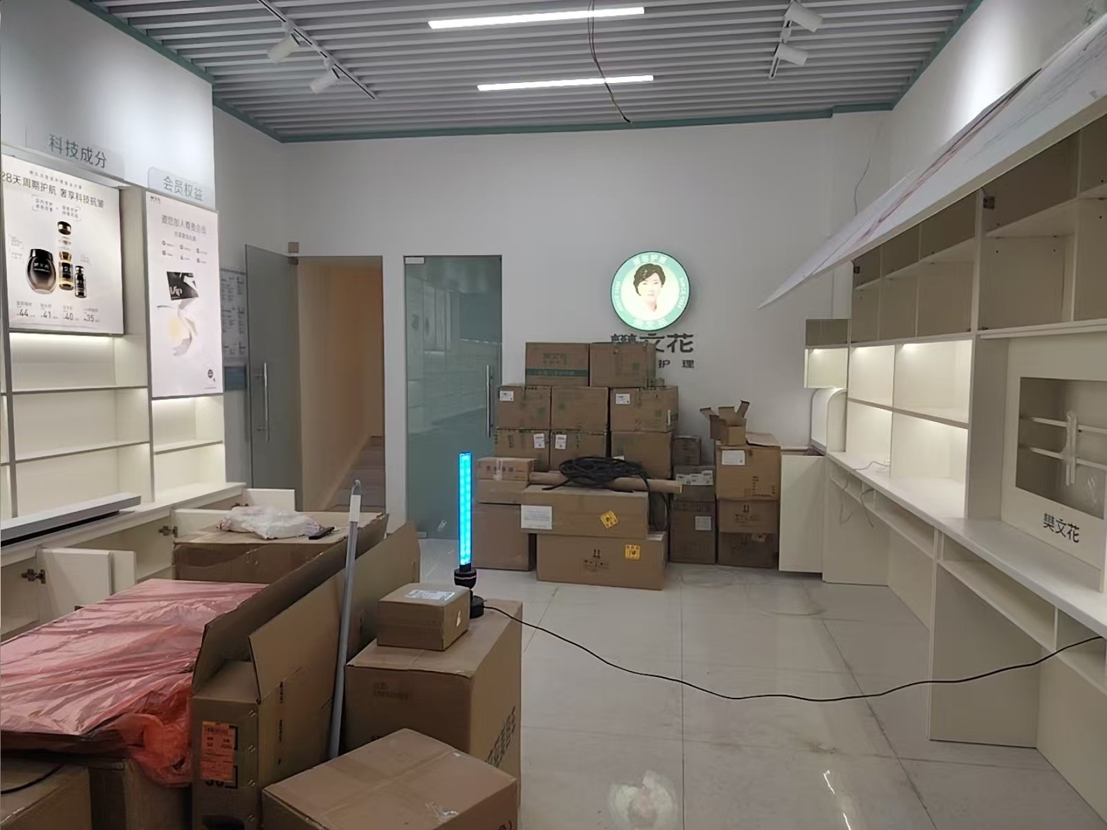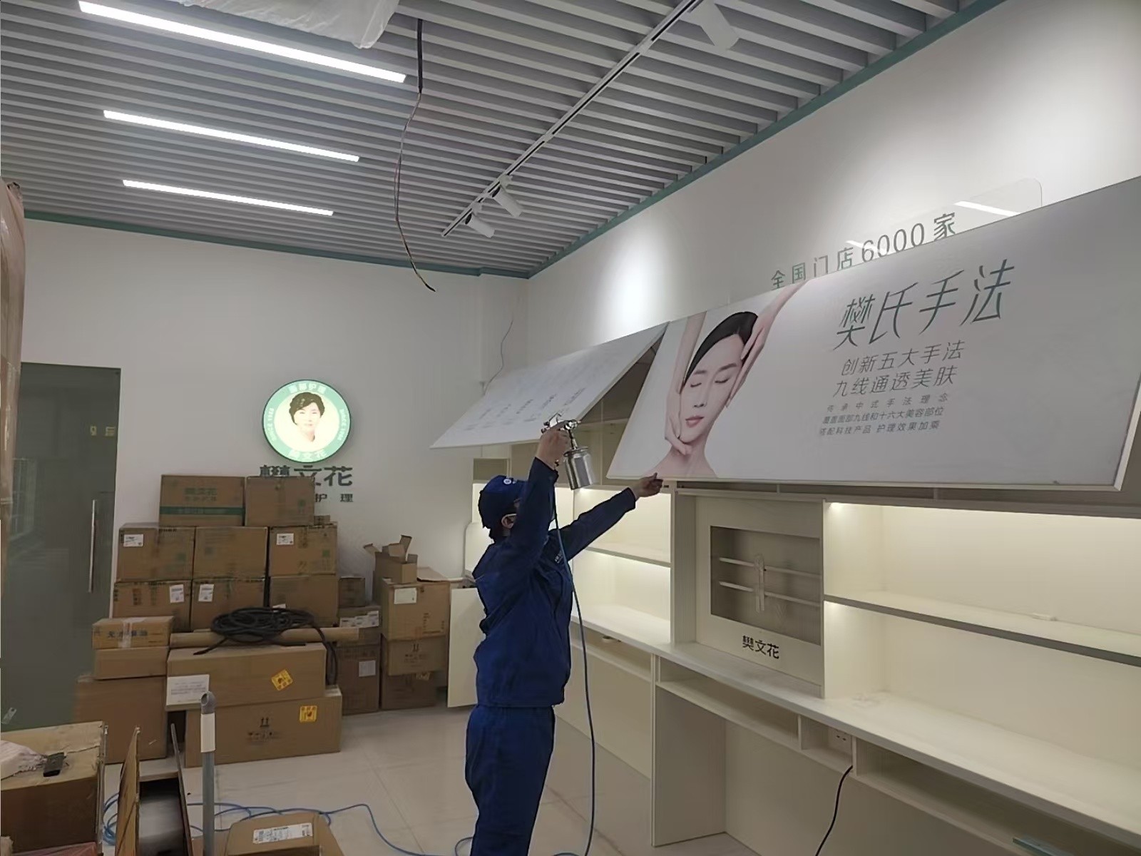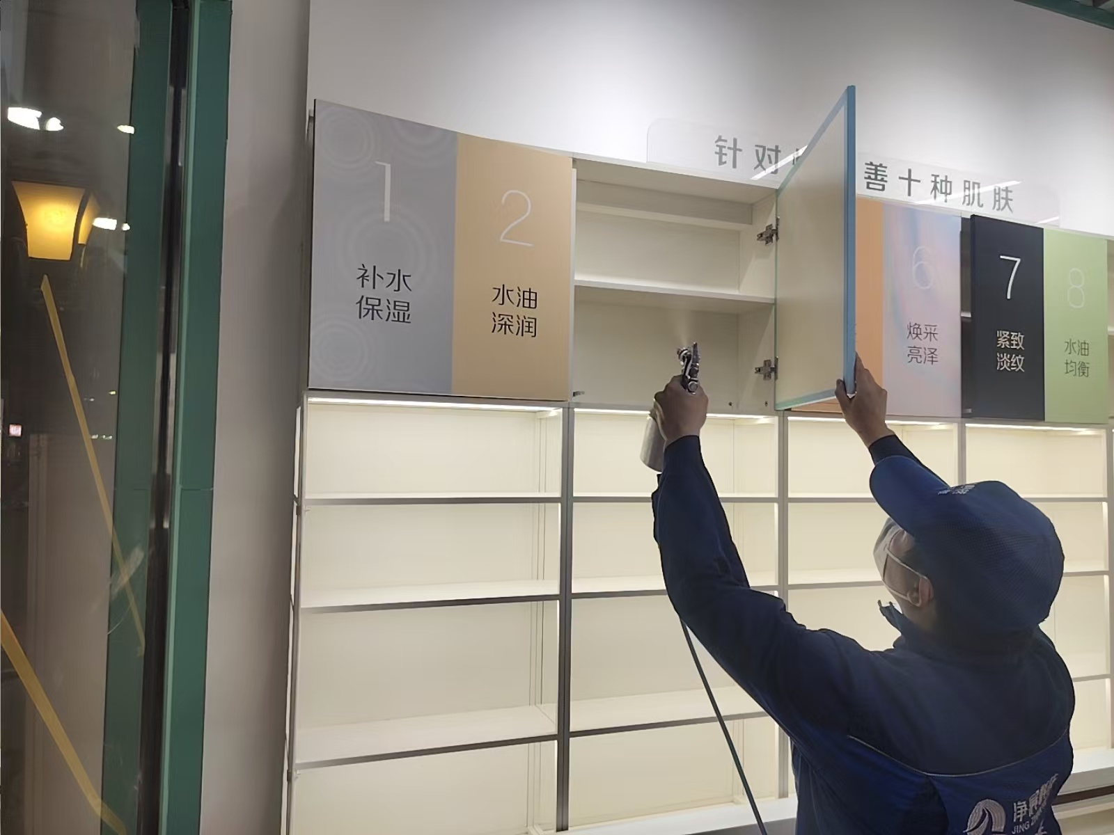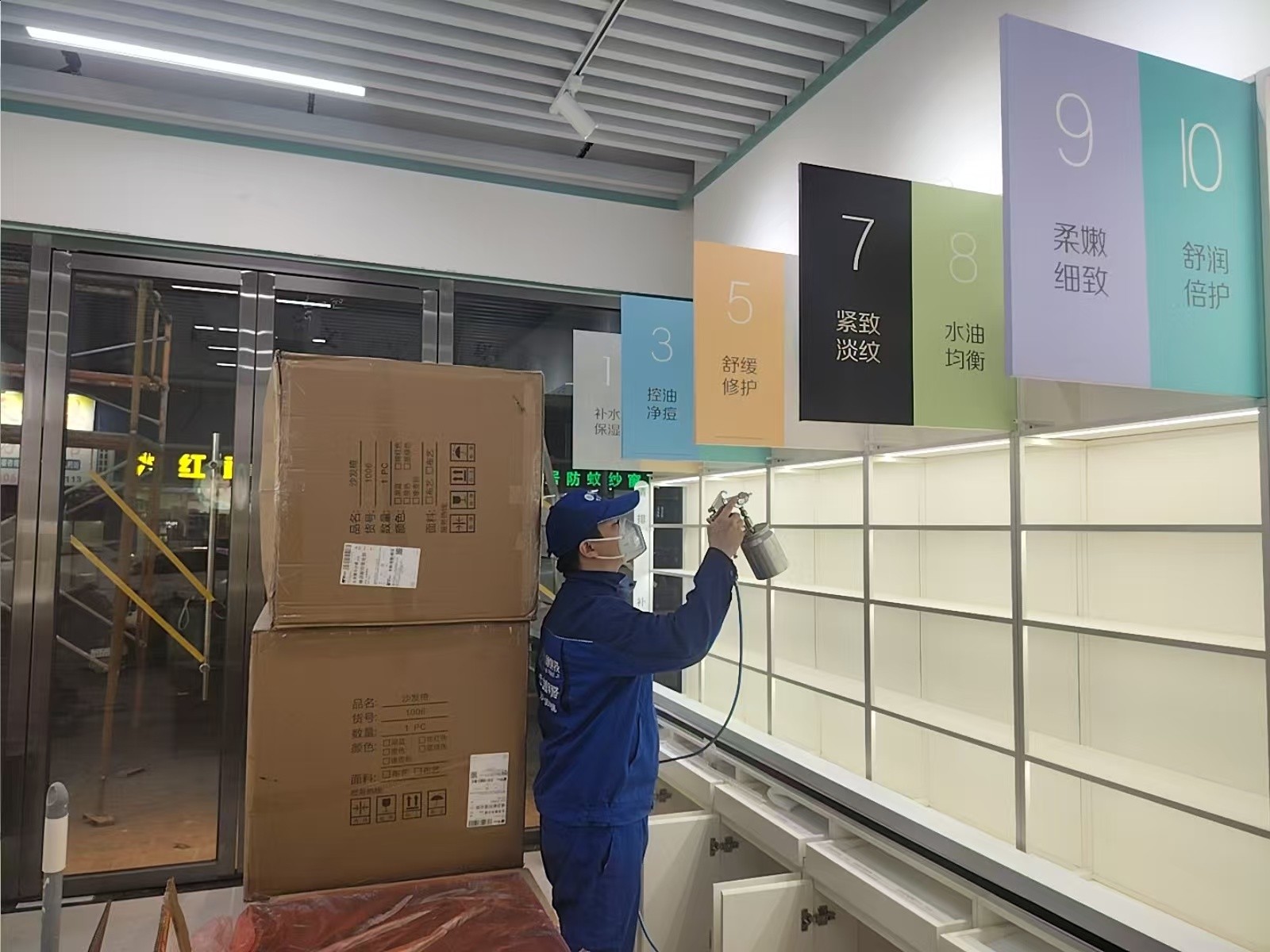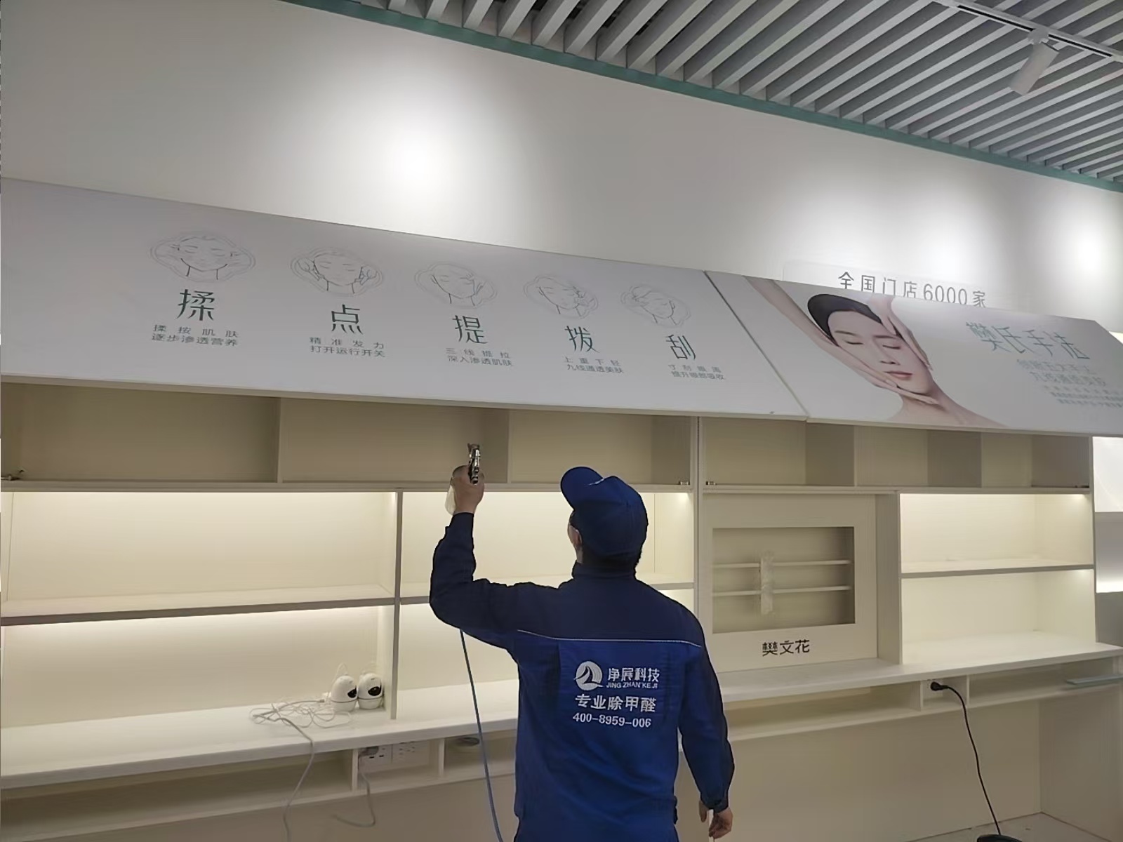 东莞东城商业街新开业的护肤门店,装修材料甲醛浓度检测超标,为员工和顾客身体健康进行除甲醛工作,治理后甲醛浓度符合国家标准