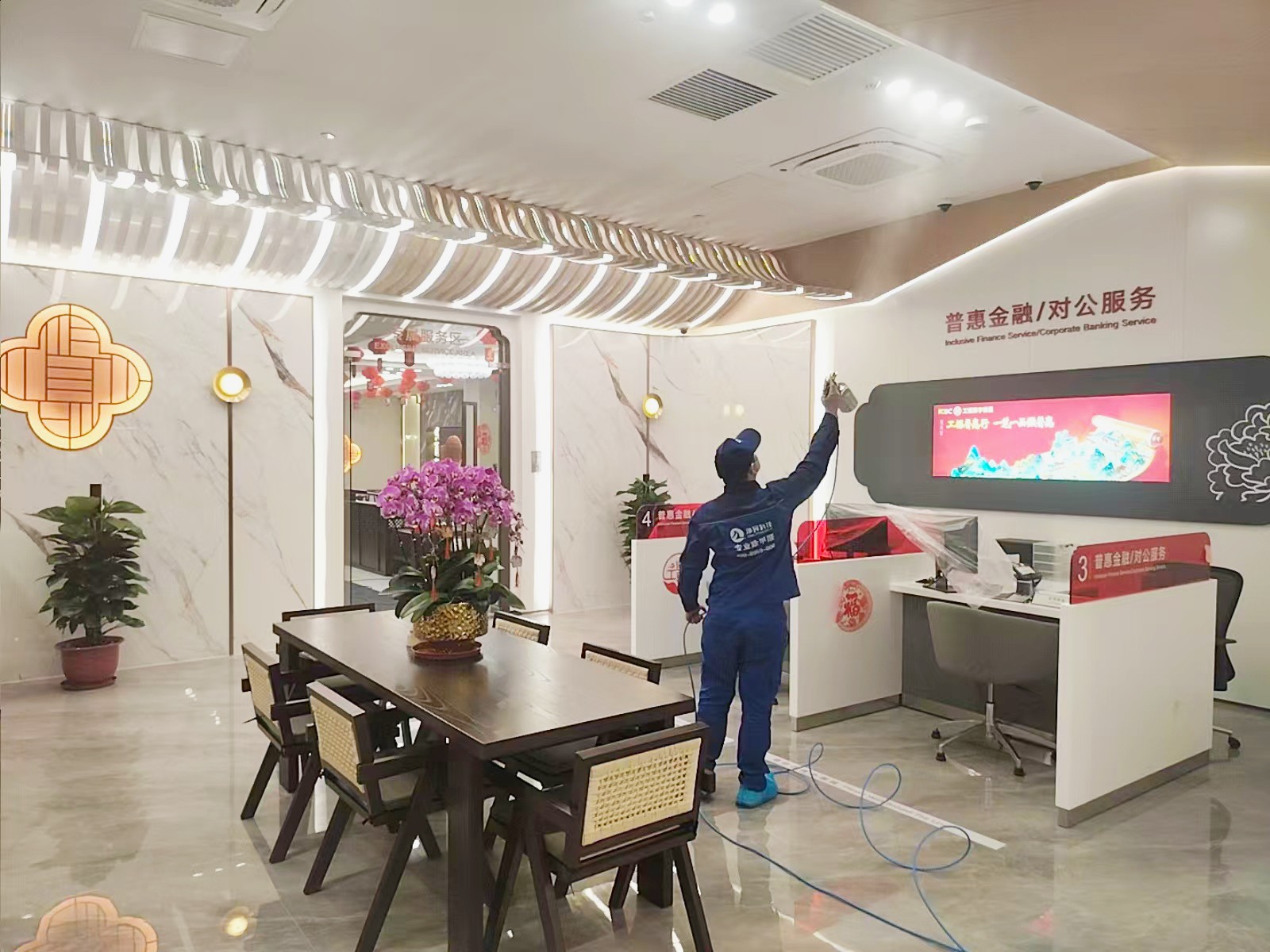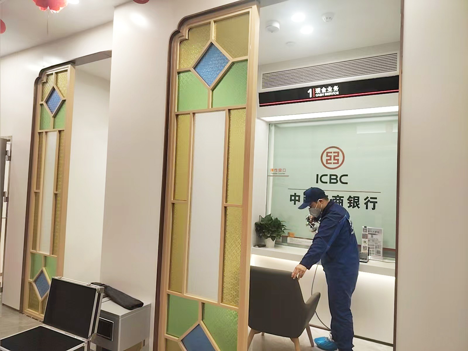 荔湾区工商银行西关支行新装修,室内装修材料,家具甲醛浓度超过国家标准,现特采用专业技术分解室内甲醛及TVOC等污染物