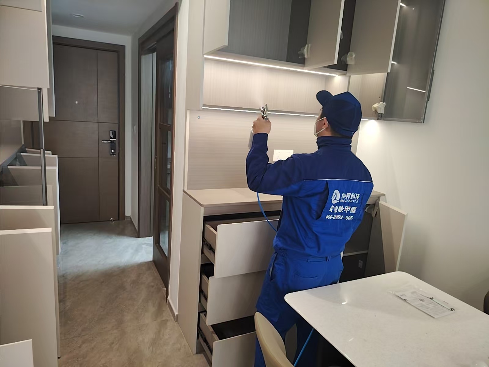番禺区保利鸿悦花园南区内一新房装修完成,装修材料及新家具致屋内甲醛、苯、TVOC等有害气体超标,为尽快入住,经过一次详细的甲醛治理,分解消除室内绝大多数的有害气体