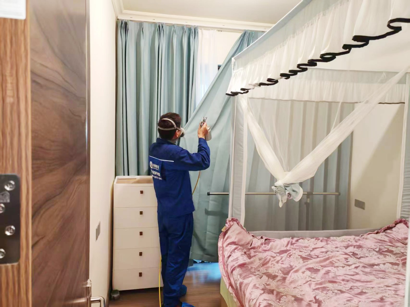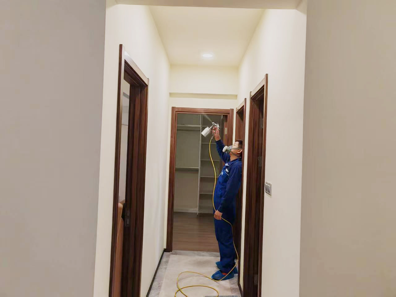 韶关市武江区碧桂园太阳城天钻三期新房,经专业的检测设备检测甲醛,检测结果显示浓度超标,对人体有害,当即针对屋内的各个环境进行全面的除甲醛施工