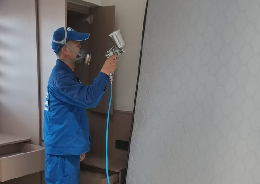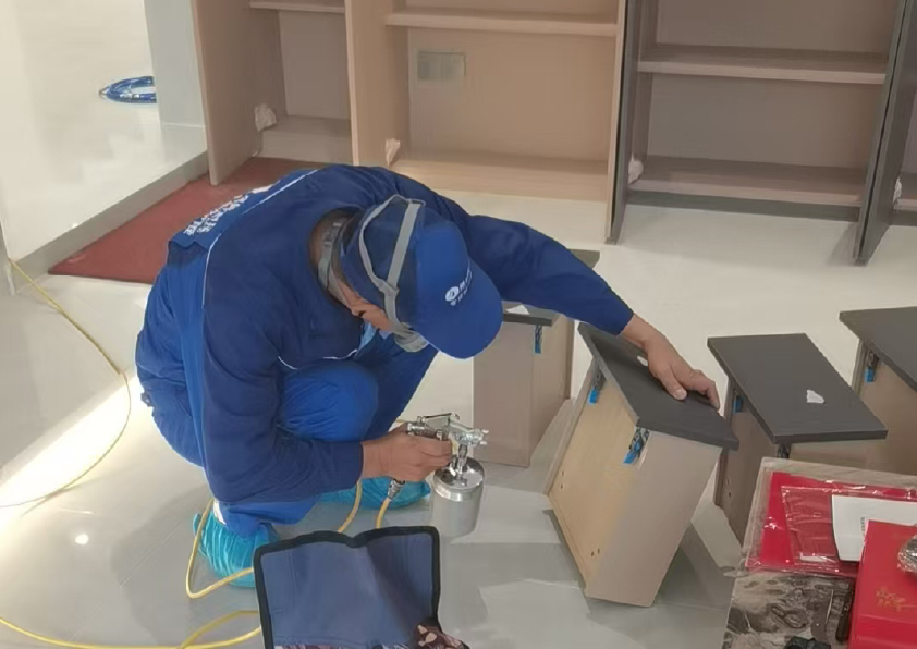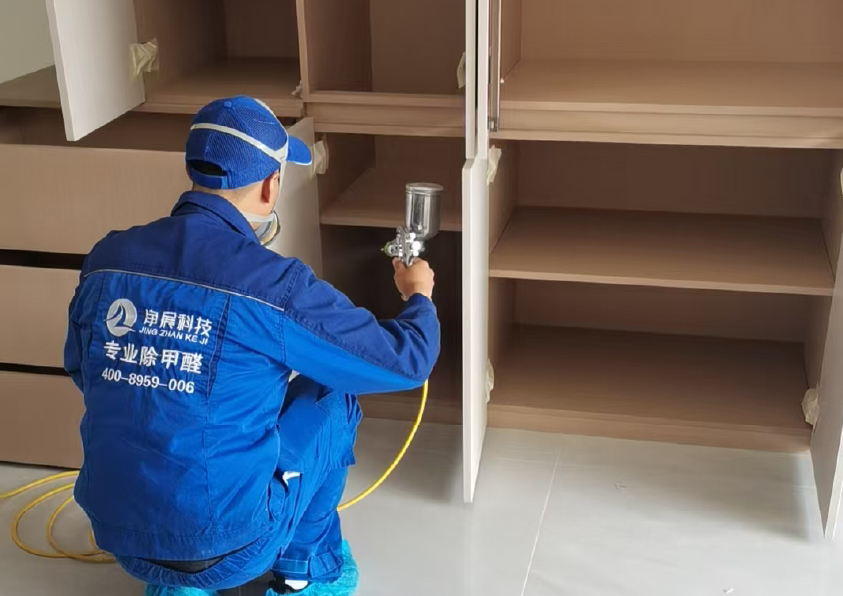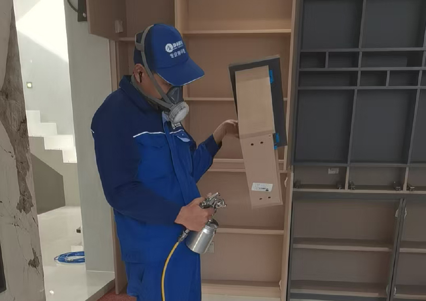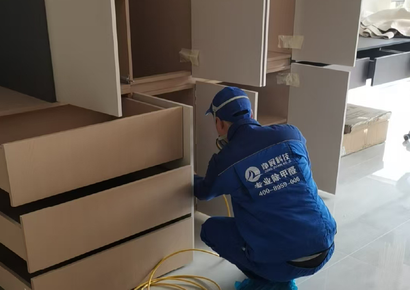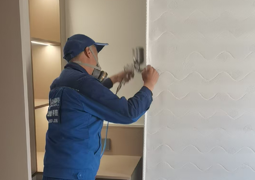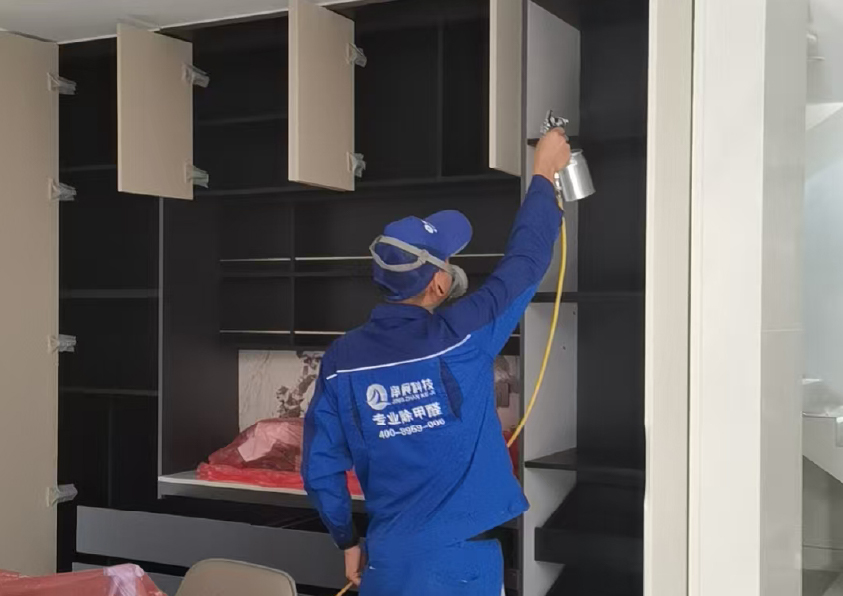 佛山市南海区金穗花园住宅除甲醛施工,采用对人体无毒无害,对家具基材无损的无二次污染的产品治理,治理后屋内各区域无刺激性气味,检测后显示甲醛浓度符合国家标准