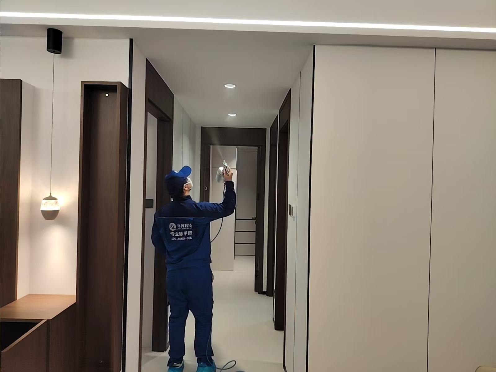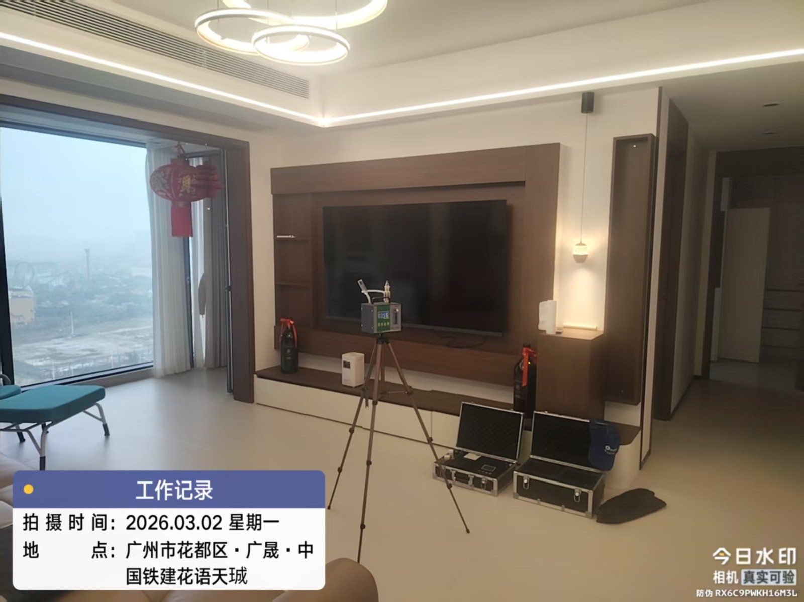 花都区广晟中国铁建花语天铖小区内一套四居室150㎡左右,新房装修甲醛和苯等有害气体超标,现进行全方位甲醛检测与治理,包括客厅、卧室、儿童房、厨房等空间,为家人健康保驾护航。
