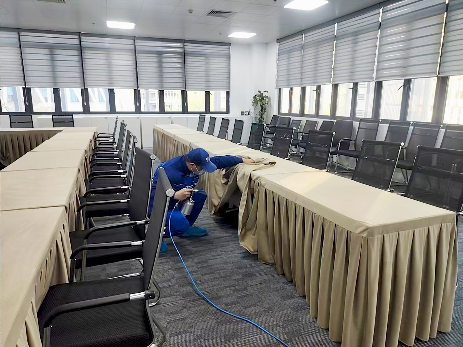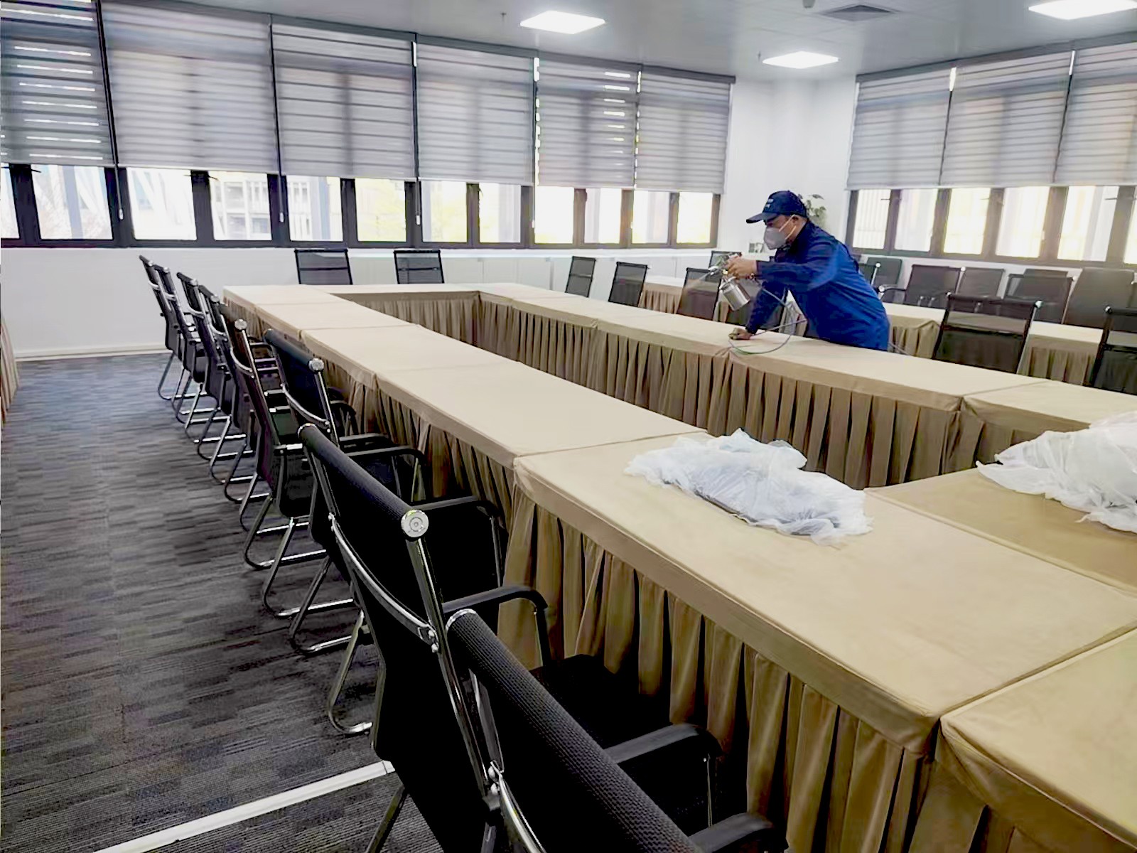 经检测佛山市南海区季华实验室会议厅内桌椅、桌布、窗帘等新物品甲醛含量超标,应要求进行细致的甲醛治理,治理结束后复检甲醛浓度已达到标准。
