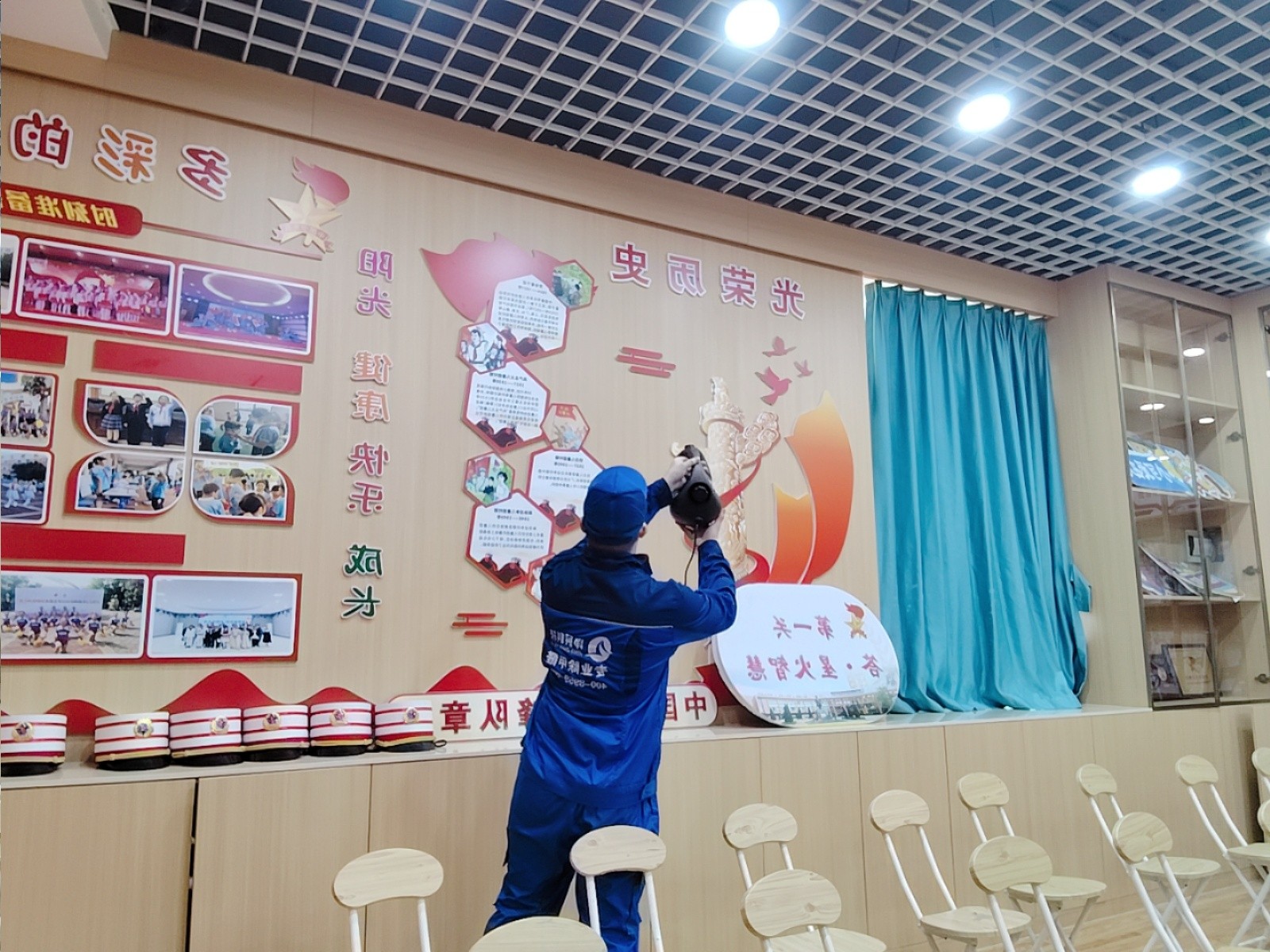 治理前,广州市番禺区金海岸实验中学新建教学楼投入使用,部分教室甲醛浓度达 0.16mg/m³,超出国家标准(≤0.08mg/m³)一倍。学生出现咳嗽、皮肤发痒等症状,家长联名要求整改,学校暂缓搬迁计划。 治理时,校方联合专业团队行动:对课桌椅、地板等进行高温熏蒸加速甲醛释放;采用纳米级光触媒喷涂墙面与家具表面;安装全热交换新风系统,每日课间通风 3 次,每次 30 分钟;在教室角落放置椰壳活性炭包。 治理后,第三方检测显示甲醛浓度降至 0.04-0.05