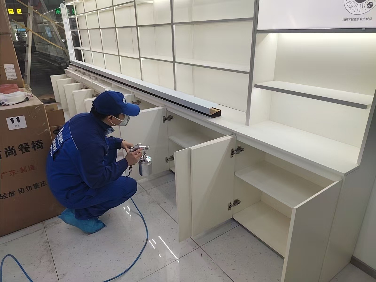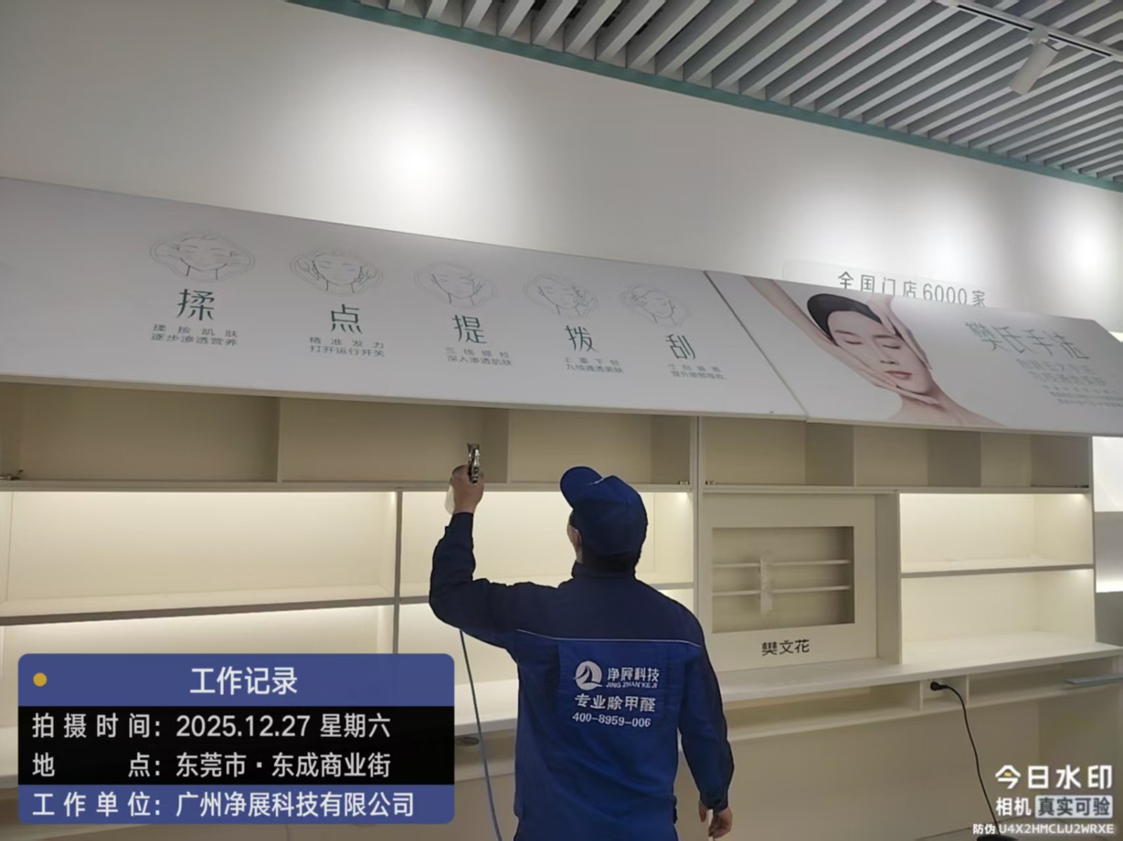 东莞东城商业街新开业的护肤门店,装修材料甲醛浓度检测超标,为员工和顾客身体健康进行除甲醛工作,治理后甲醛浓度符合国家标准