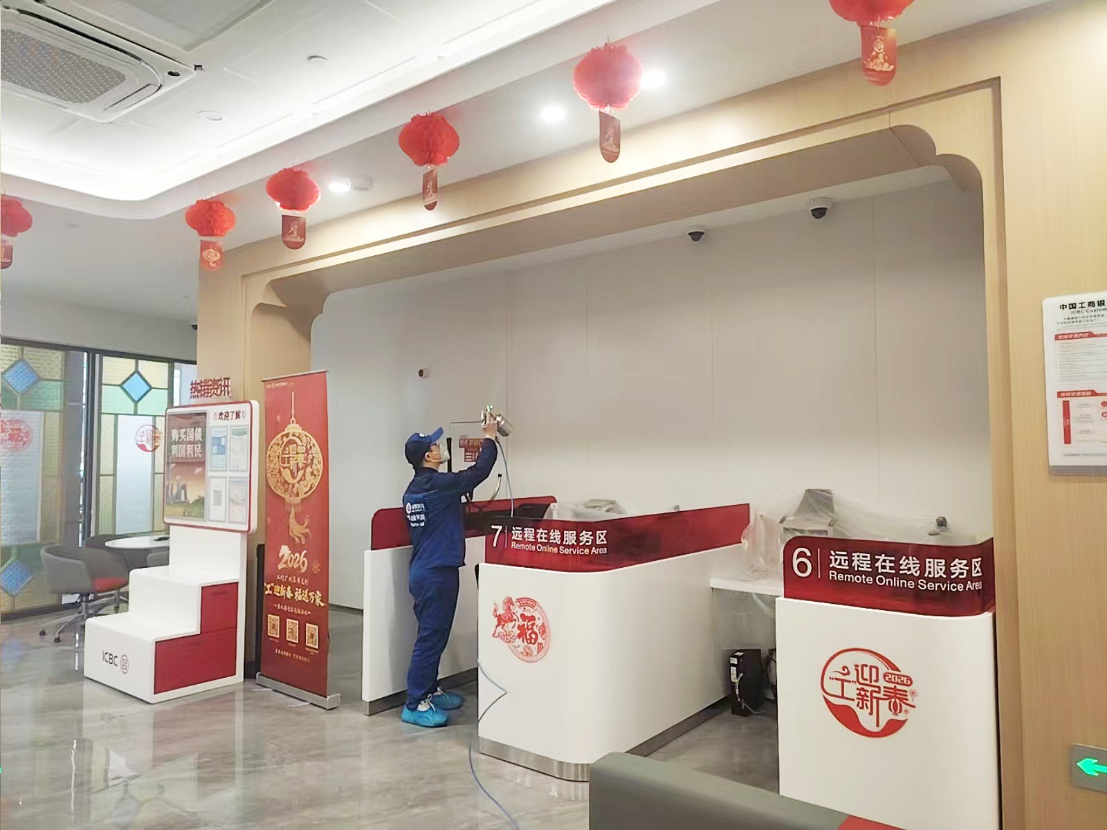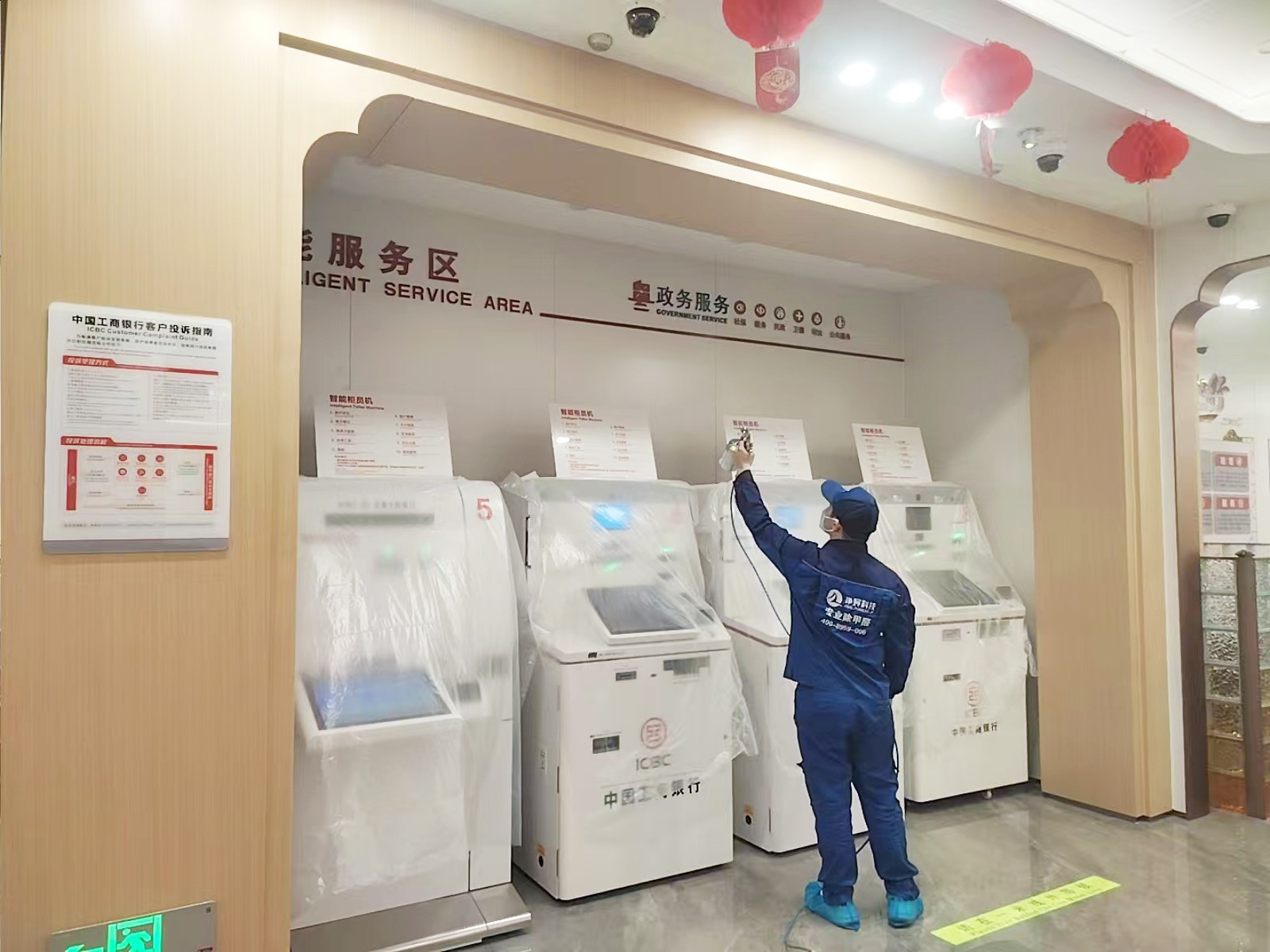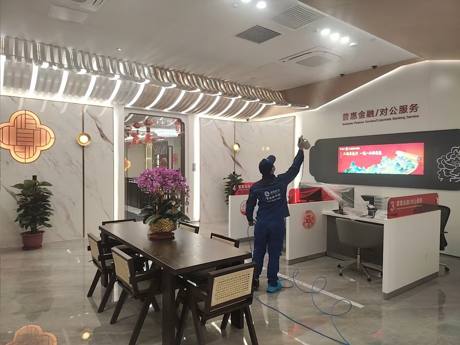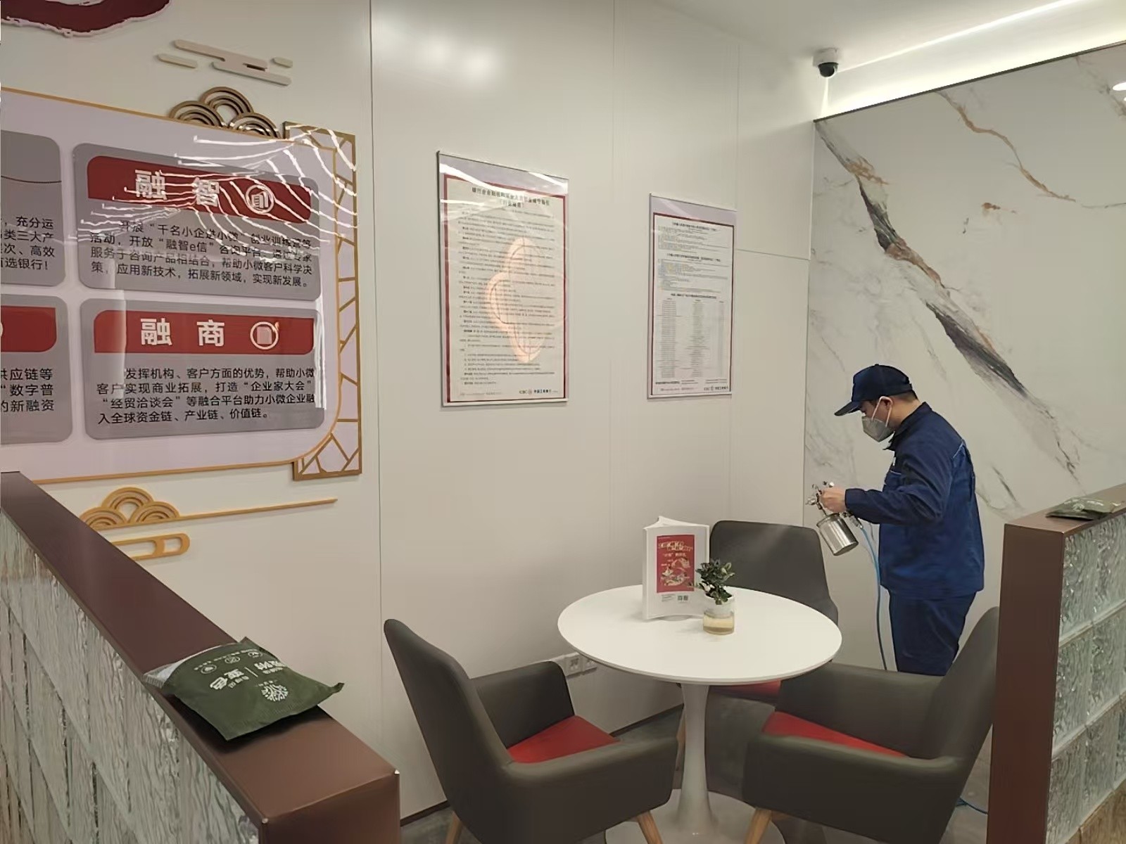 荔湾区工商银行西关支行新装修,室内装修材料,家具甲醛浓度超过国家标准,现特采用专业技术分解室内甲醛及TVOC等污染物