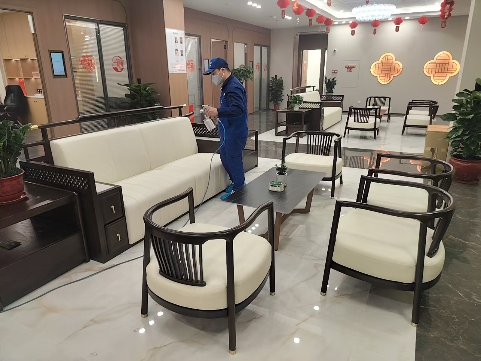 对所有家具表面进行清洁,确保无灰尘