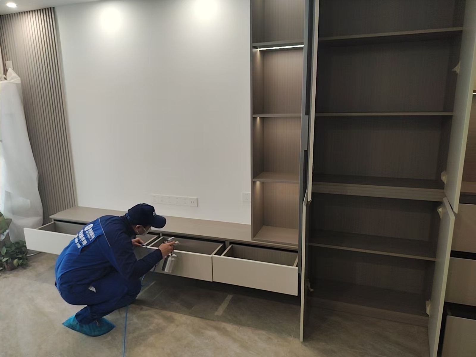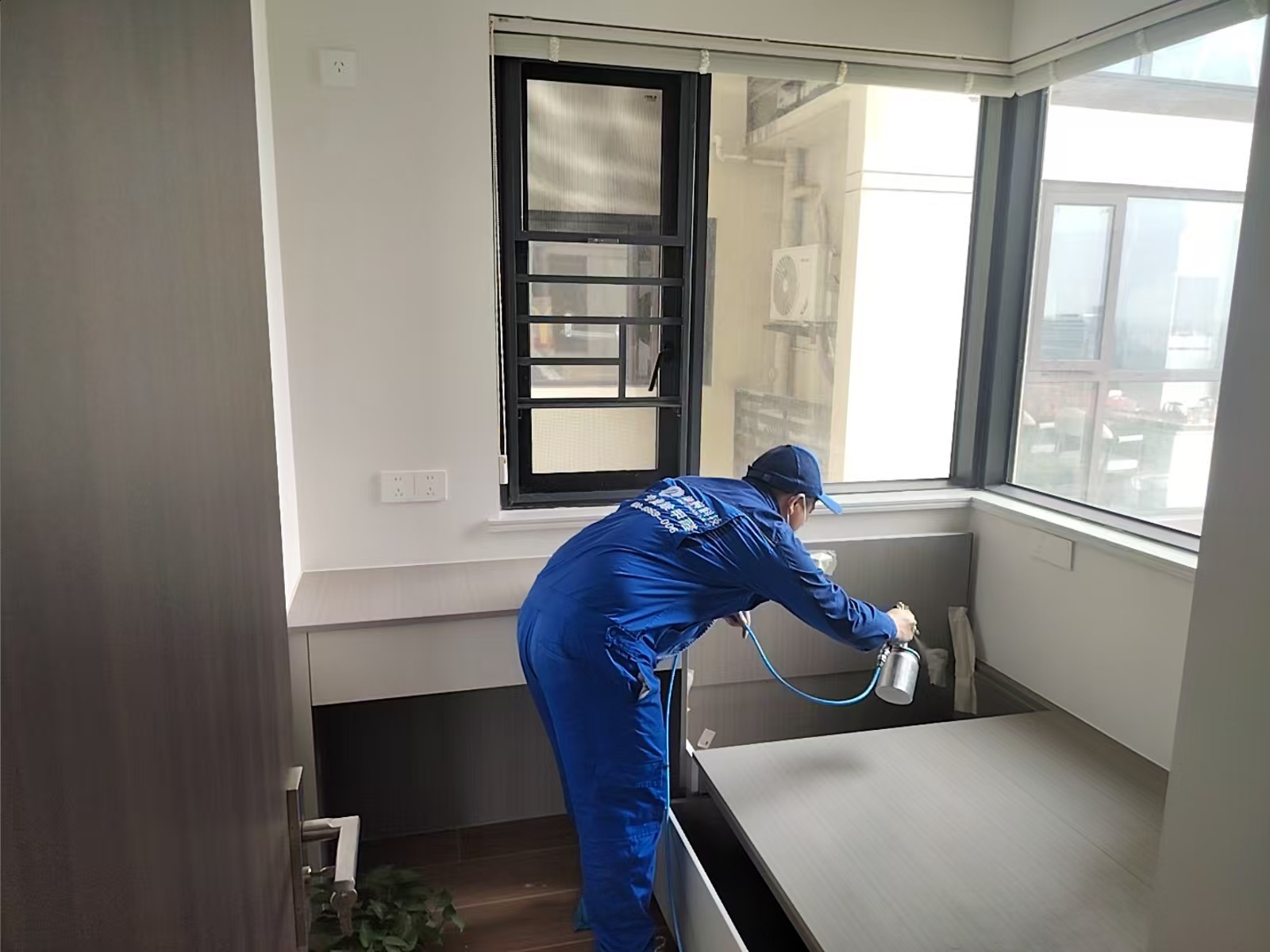 番禺区保利鸿悦花园南区内一新房装修完成,装修材料及新家具致屋内甲醛、苯、TVOC等有害气体超标,为尽快入住,经过一次详细的甲醛治理,分解消除室内绝大多数的有害气体