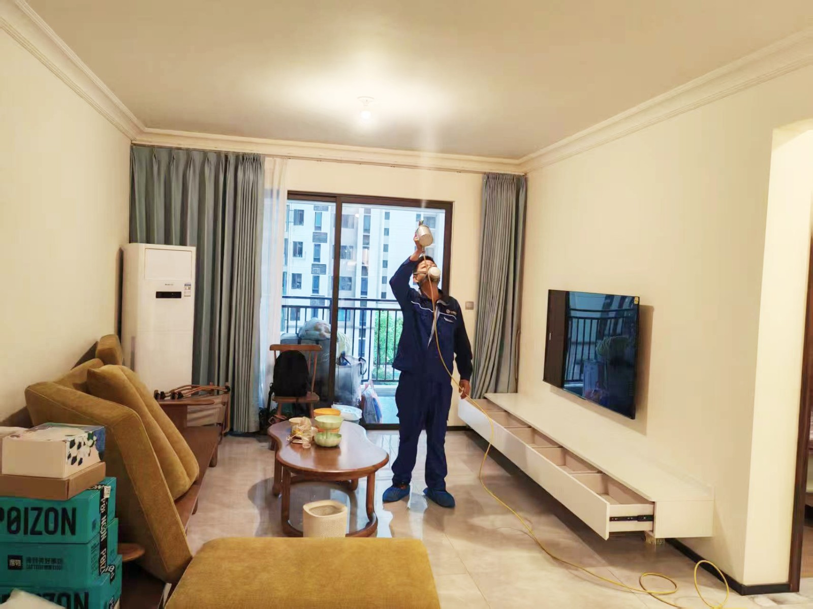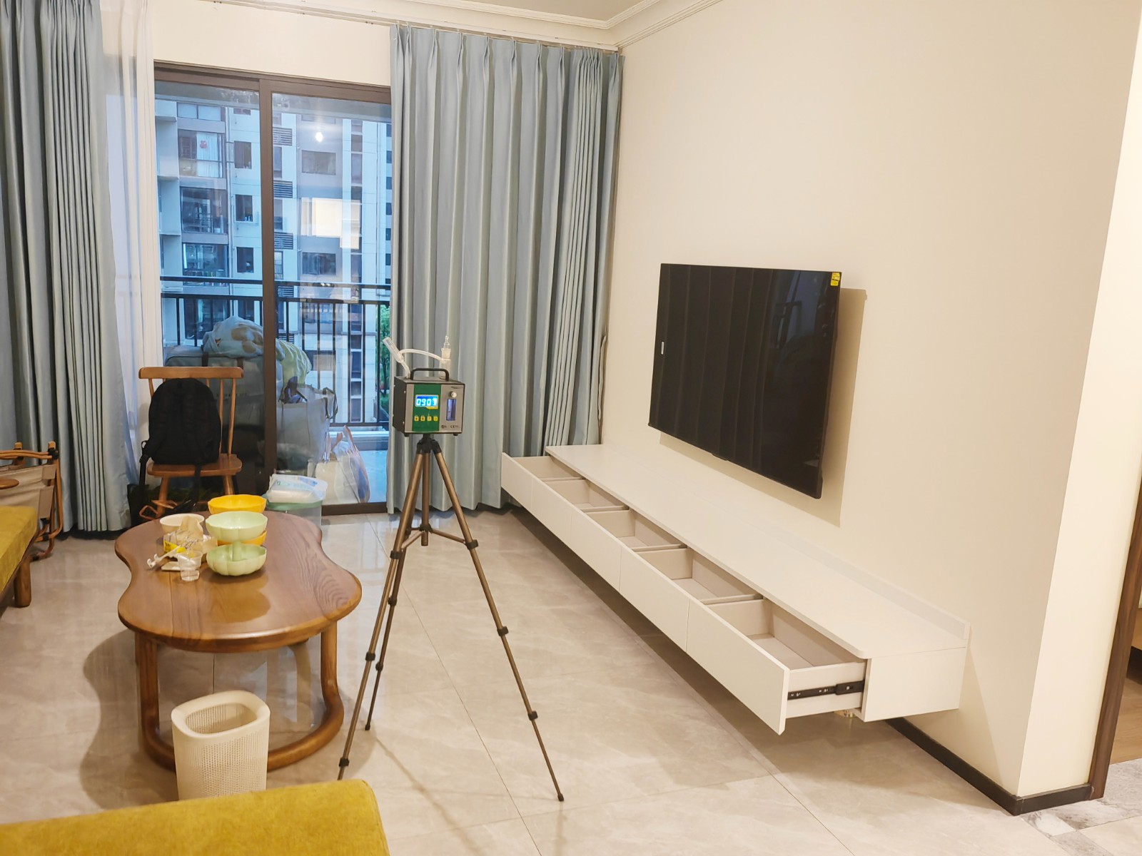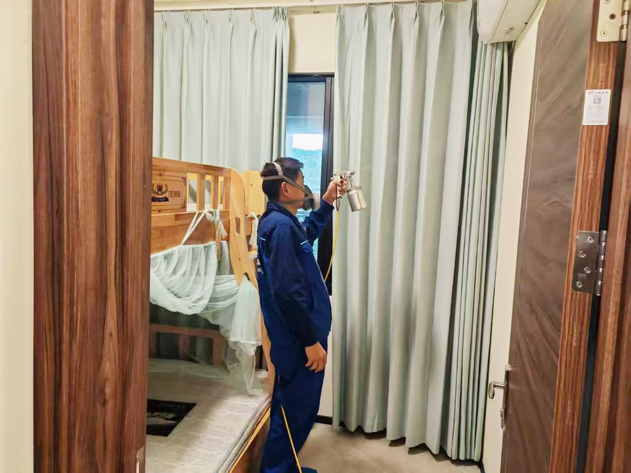 韶关市武江区碧桂园太阳城天钻三期新房,经专业的检测设备检测甲醛,检测结果显示浓度超标,对人体有害,当即针对屋内的各个环境进行全面的除甲醛施工