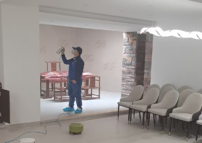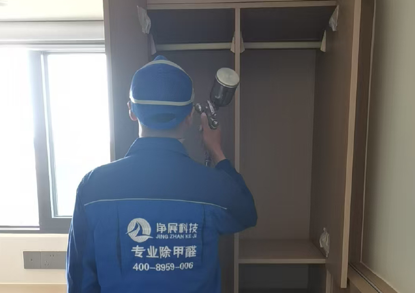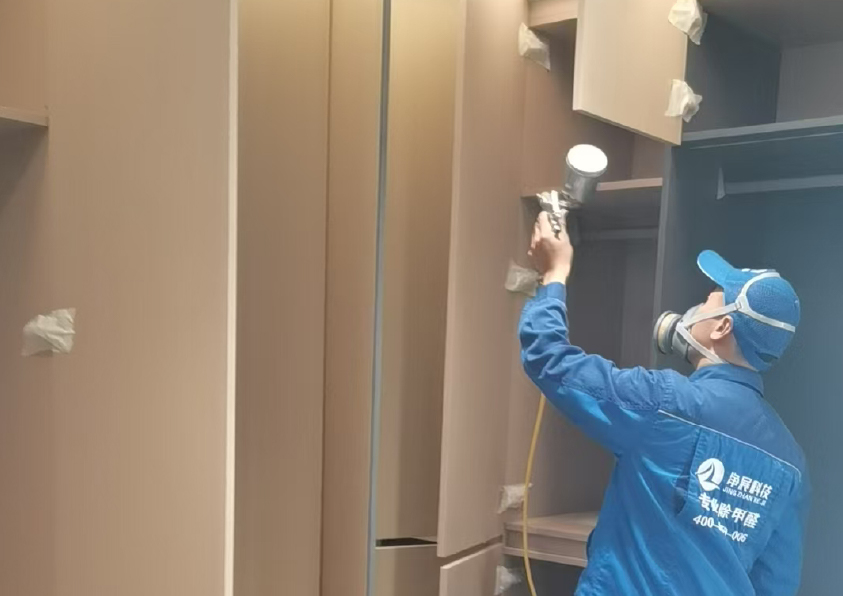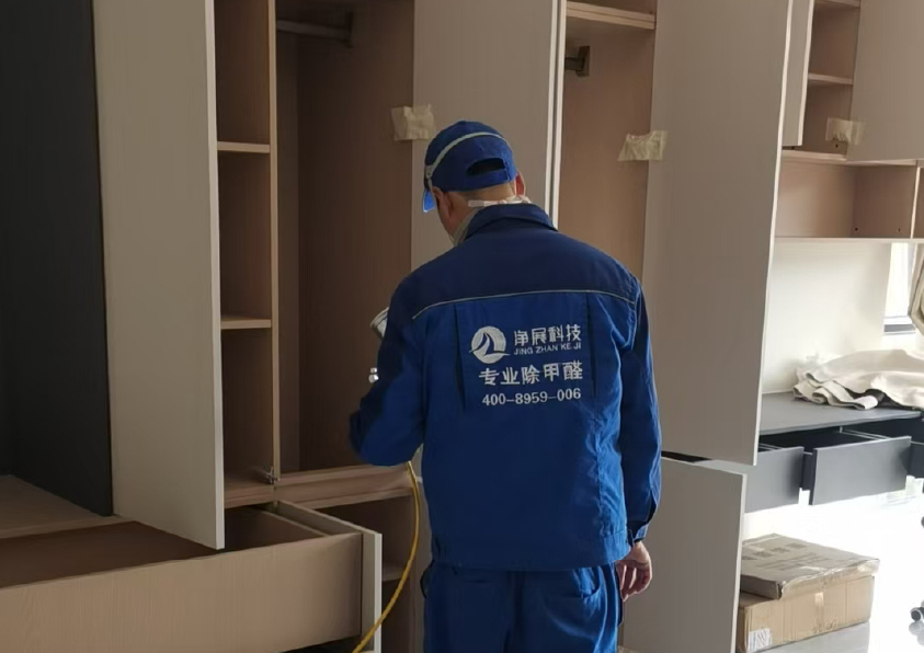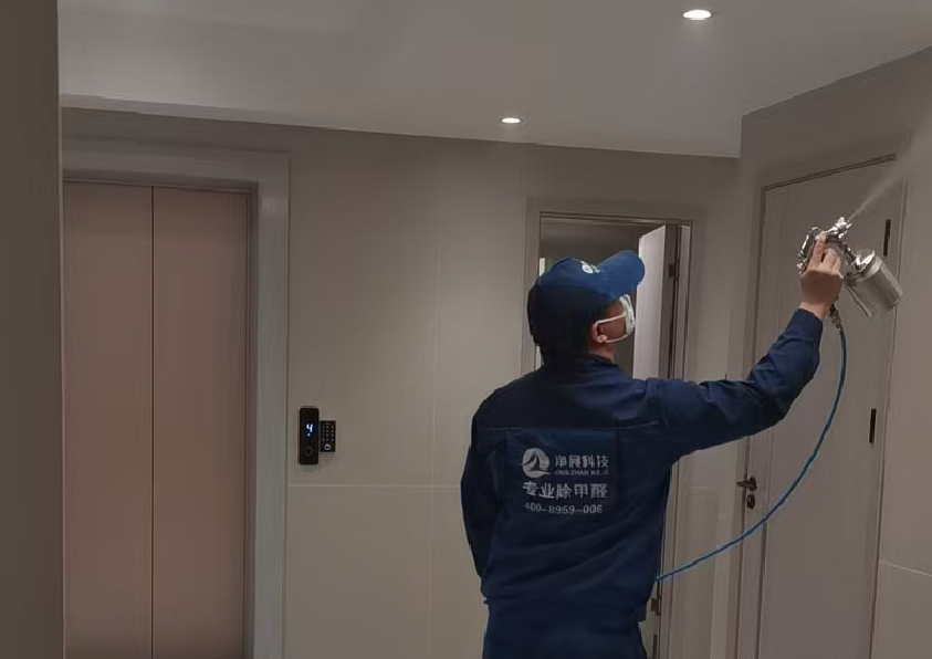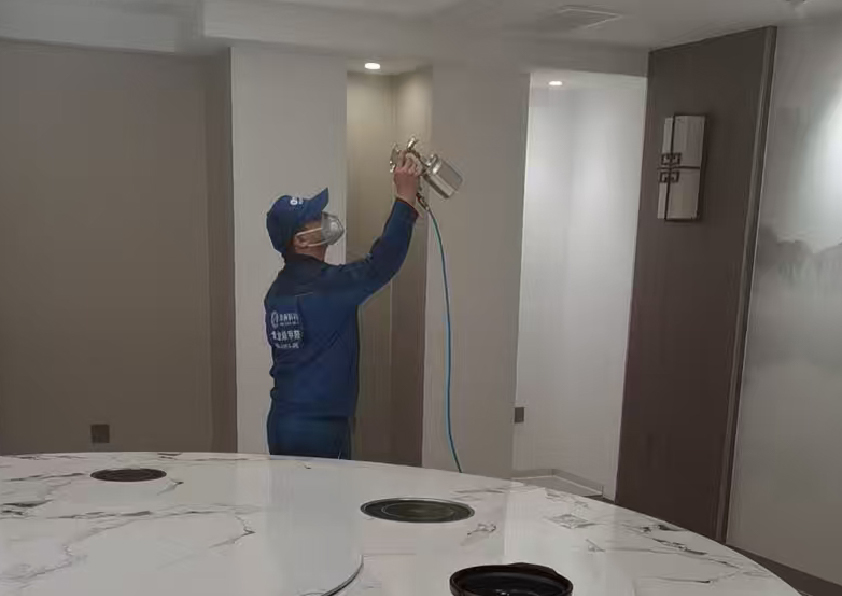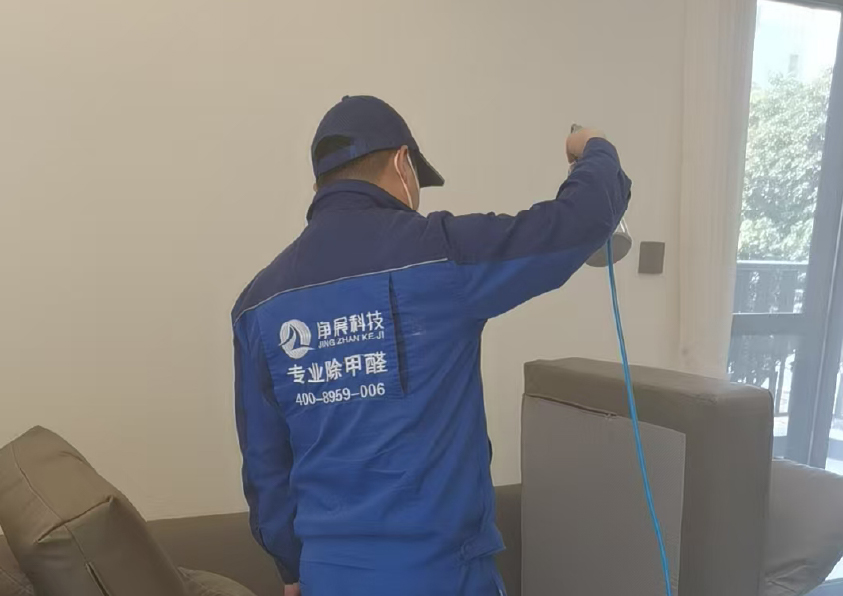 佛山市南海区金穗花园住宅除甲醛施工,采用对人体无毒无害,对家具基材无损的无二次污染的产品治理,治理后屋内各区域无刺激性气味,检测后显示甲醛浓度符合国家标准