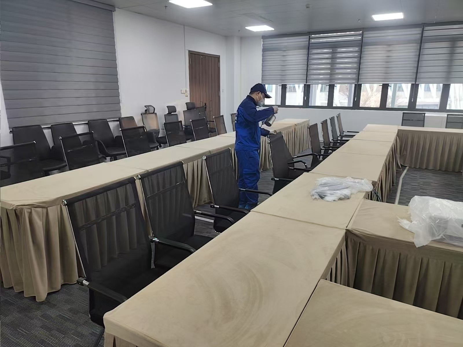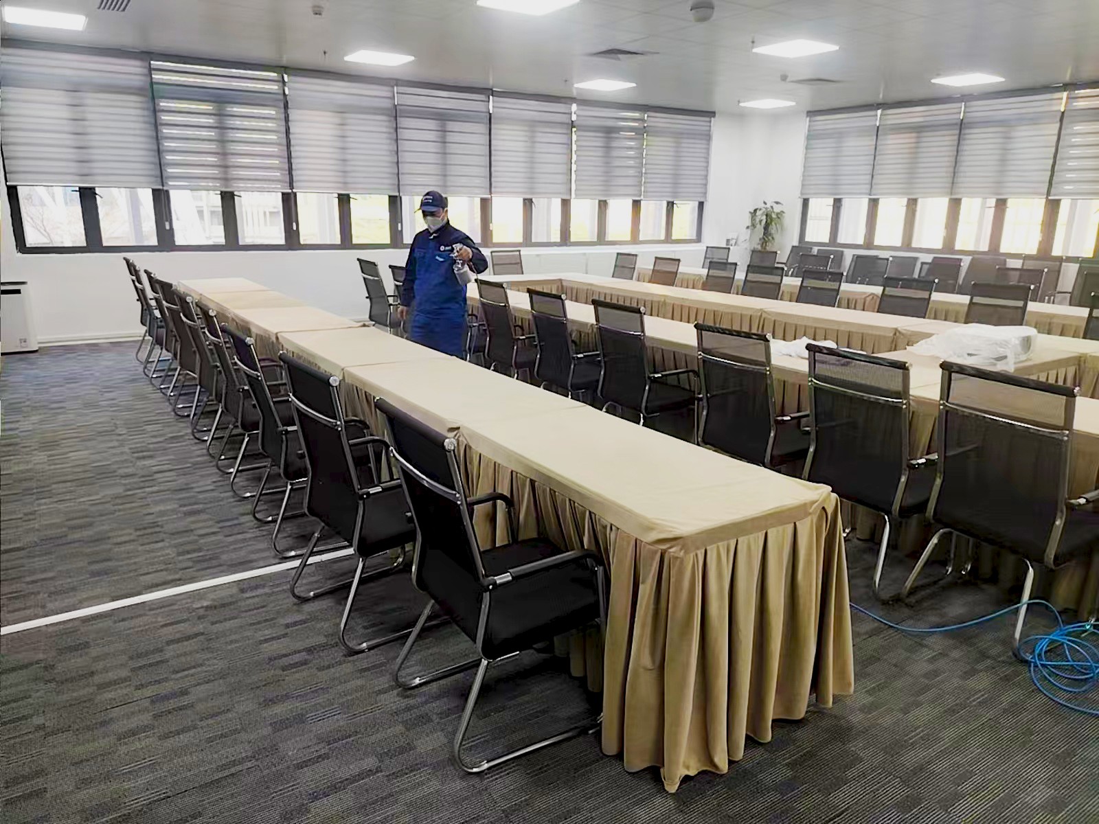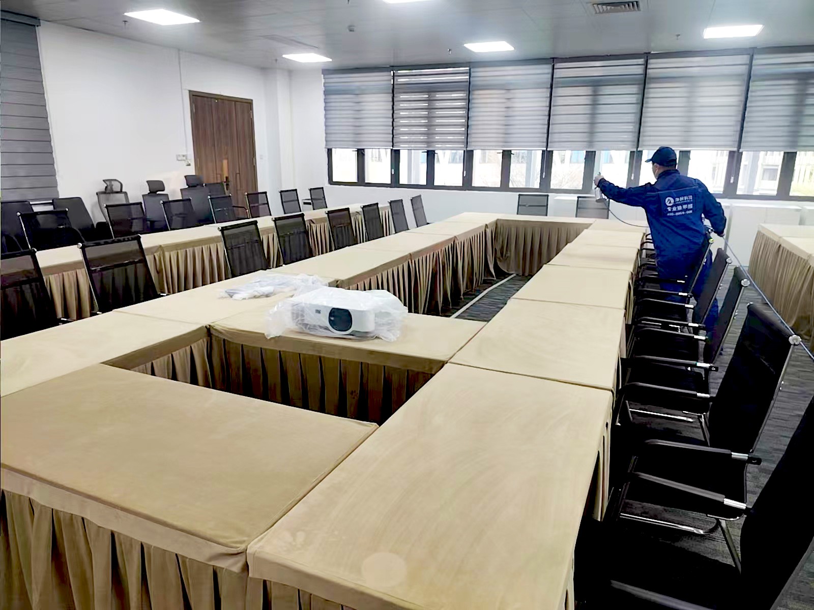 经检测佛山市南海区季华实验室会议厅内桌椅、桌布、窗帘等新物品甲醛含量超标,应要求进行细致的甲醛治理,治理结束后复检甲醛浓度已达到标准。