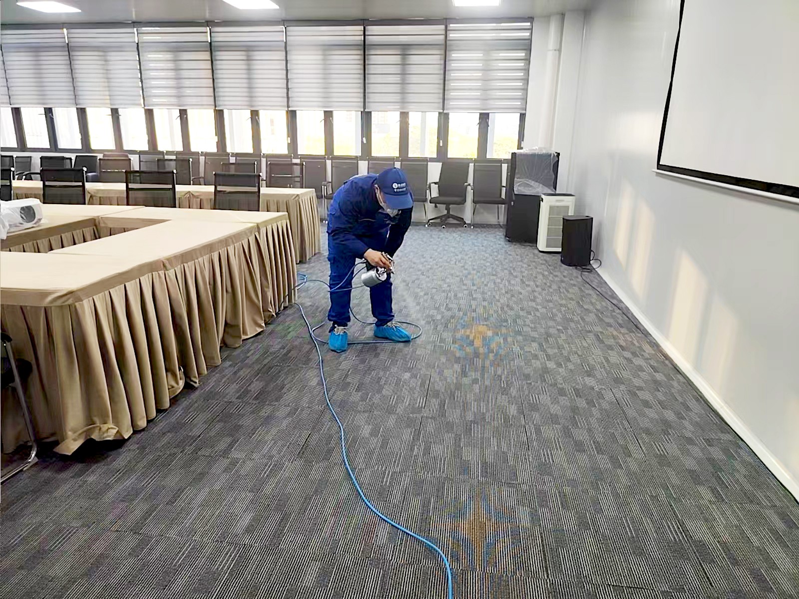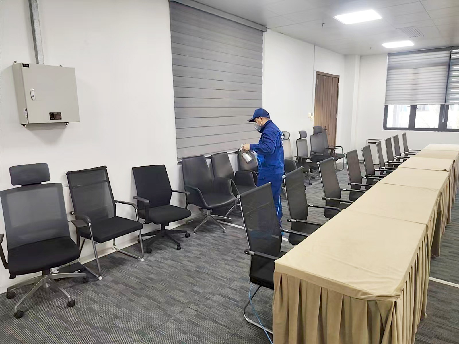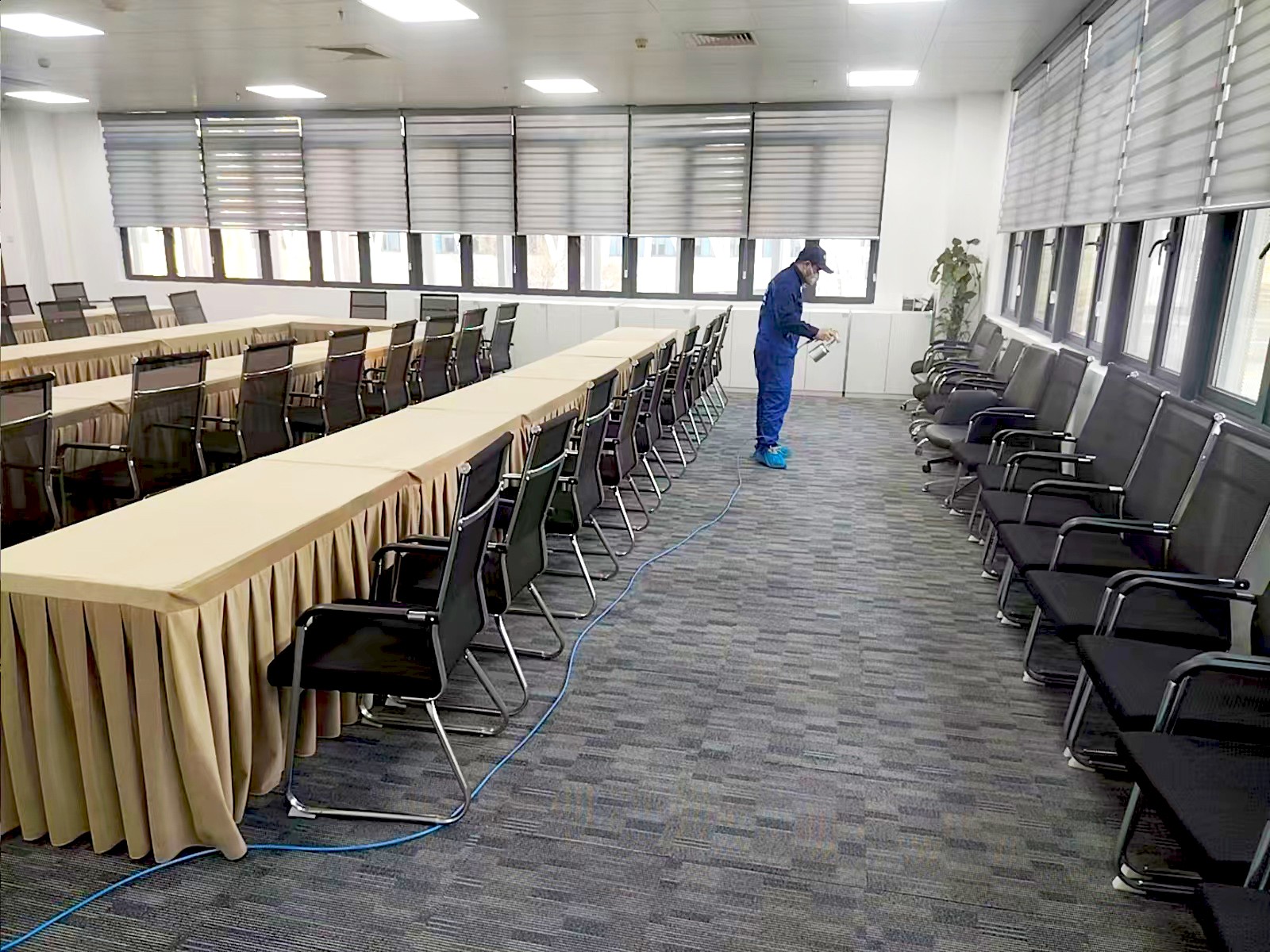 经检测佛山市南海区季华实验室会议厅内桌椅、桌布、窗帘等新物品甲醛含量超标,应要求进行细致的甲醛治理,治理结束后复检甲醛浓度已达到标准。