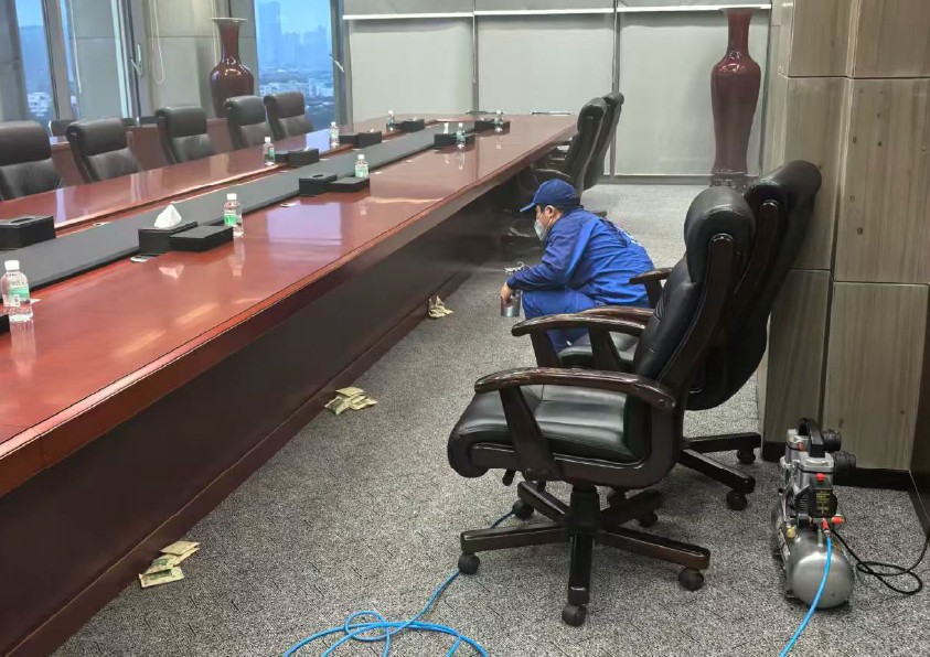 天河区发展中心会议室室内空气污染严重,为了达到健康良好的空气环境,对室内各处地方进行细致的甲醛治理